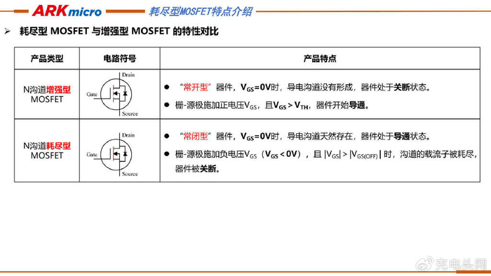 赵兴杰指出,增强型MOSFET是 “常开型” 器件,VGS=0V时关断,施加正电压且VGS>VTH 时导通;耗尽型MOSFET是“常闭型”器件,VGS=0V时导通,施加负电压且VGS>VGS(OFF)时关断。