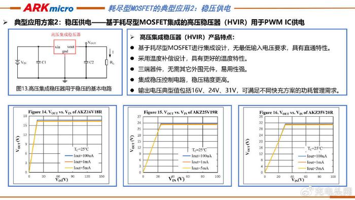 基于耗尽型MOSFET的高压稳压器具备直通特性、温度特性更优、易用性强、稳压精度高及支持16V、24V、31V多种输出电压典型值,可满足不同快充方案的功耗管理需求。