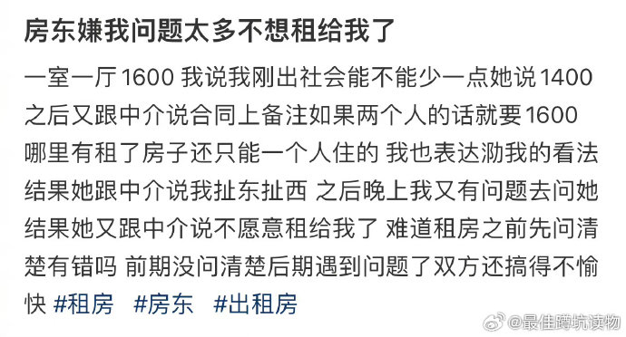 #房东嫌我问题太多不想租给我了# 你确实,事儿挺多的