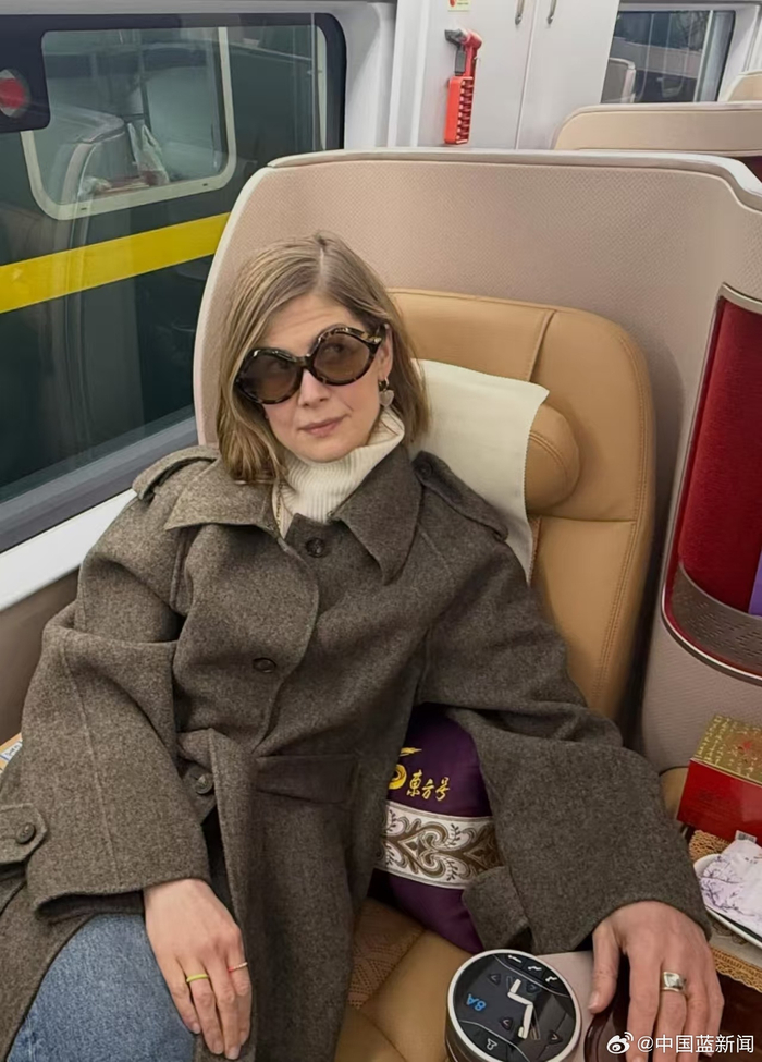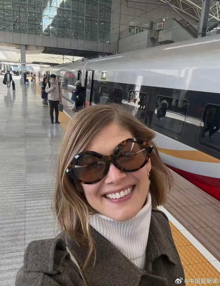 【#好莱坞影后赞中国高铁堪比顶级飞机#】今日,好莱坞影星裴淳华(Rosamund Pike)发布图文夸赞中国高铁,据了解她2月3日从上海到北京选择了高铁出行。她感叹道:“商务舱的列车之旅别具一格。令人难以置信的先进技术。最高时速350公里,座位堪比最顶级的飞机。平稳得令人感觉仿佛在空中飘浮。在中国的日程安排十分紧凑,能有这样一个暂停来放松和重置我的大脑至关重要。我感觉自己像个兴奋的孩子。”