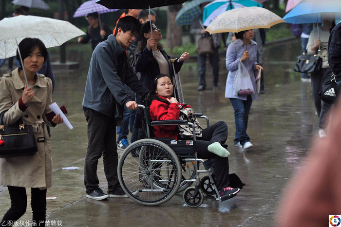 图为2013年,安徽合肥考点,首设残疾人考场,残疾人首次参加公务员考试,考试结束后残疾考生宣海结束考试后回到家中。宣海曾几次报名参加公务员招考,因视力不合格,连资格审查都未能通过。2012年4月宣海认为自己参加公务员受到歧视,将安徽省人社厅告上法庭,从而成为“全国公务员招考残疾歧视第一案”,但最后被合肥市庐阳区人民法院驳回其诉讼请求,二审也被驳回。