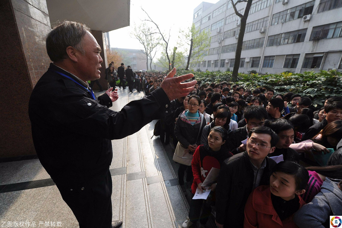 2011年,安徽合肥考点,一名工作人员在维持秩序。