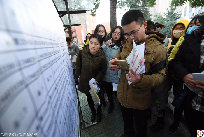 10年来,摄影师连续记录国考,这期间感受到的除了人山人海赶考场景外,还有考场外埋头充电,迟到当场落泪……这些影像中展现的,不仅仅是考生漫长而艰辛考试路,还有考生对公务员职业的期待。图为2017年12月10日早晨,国考安徽合肥庐阳中学考点,考生在查看考场位置。