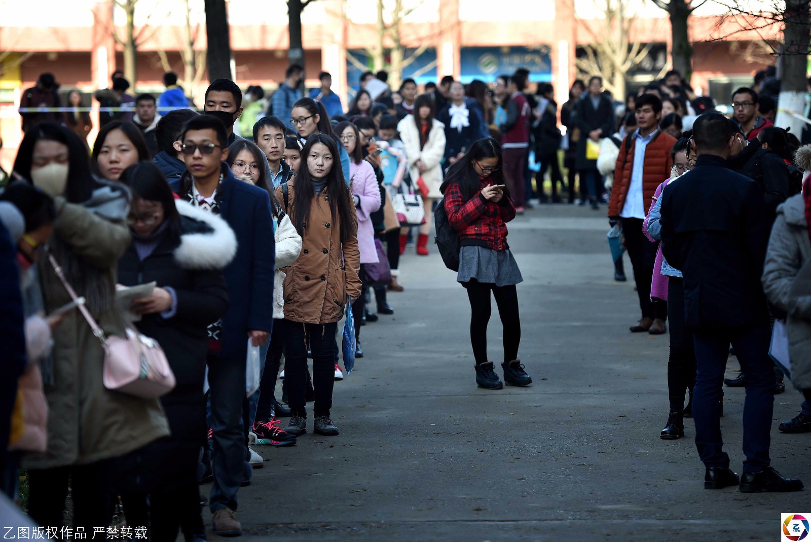 图为2016年11月27日,国考安徽考点,考生排队等待进入考场。江雨/摄影 更多精彩故事,请关注“乙图”微信公众号(yi_photos),原创作品,未经授权,严禁任何形式转载,侵权必究!