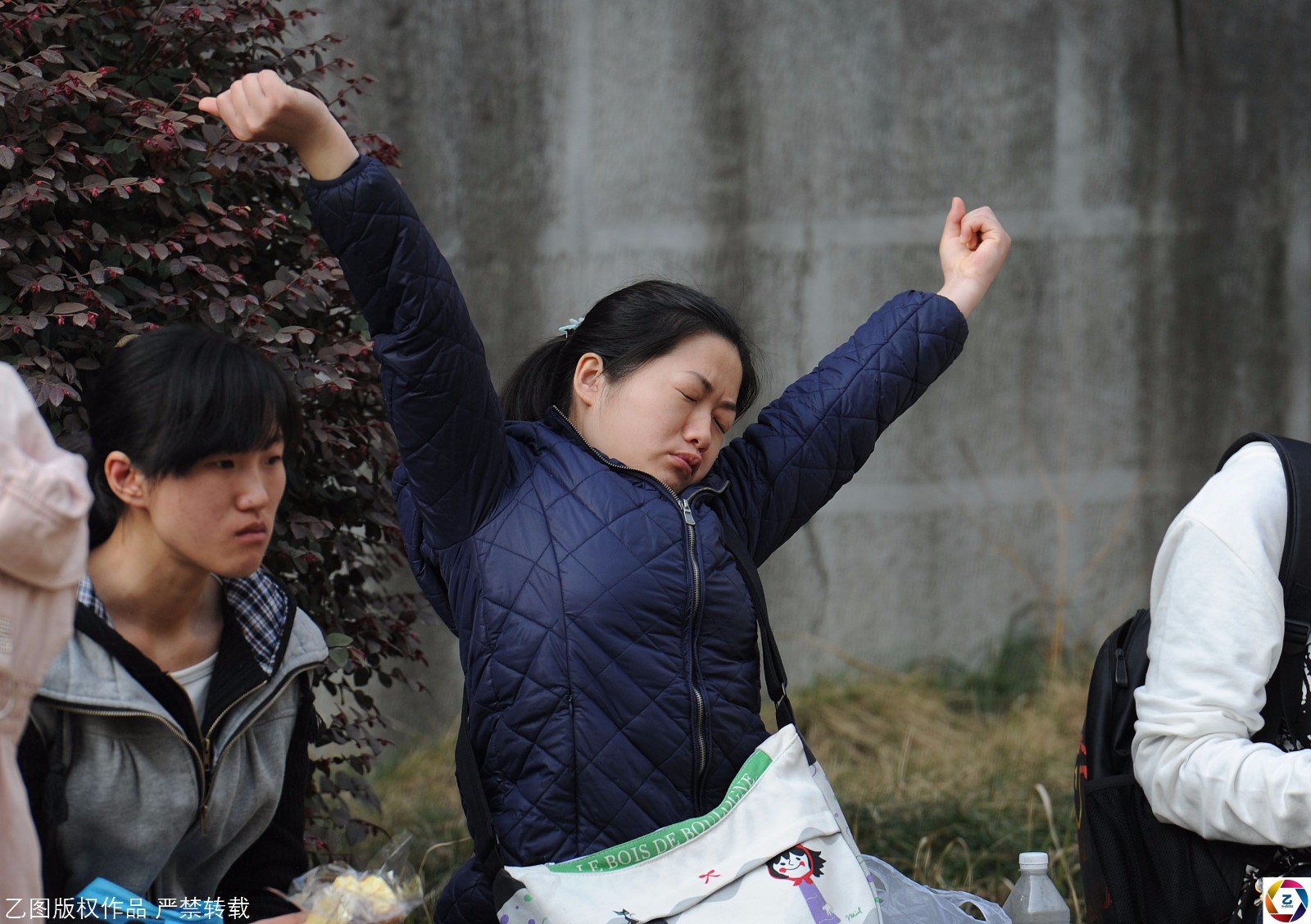 图为2011年,安徽合肥考点,一名考生因为紧张而伸懒腰。