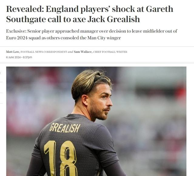 《电讯报》透露,索斯盖特没有带上格拉利什,这让英格兰全队震惊,并引发了强烈的反应。