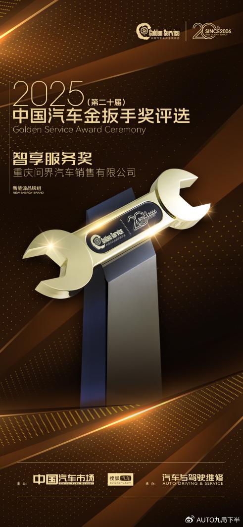 近日,由《中国汽车市场》杂志社与搜狐汽车联合主办的2025(第二十届)中国汽车金扳手奖评选结果正式公布。在本次评选中,问界汽车凭借前瞻性的“智享服务体系”与不断沉淀的用户服务实践,荣获新能源品牌组“智享服务奖”,其服务能力与用户认可度得到专业机构与市场的双重认可。此外,问界全国12家用户中心荣获“金扳手奖百强质选店”称号,有多位主播荣获“十大主播”奖项,展现了其服务生态的全面实力。