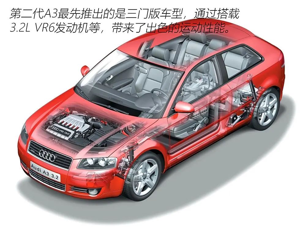 在2003年的日内瓦车展上,奥迪推出了第二代A3。这一代车型采用了升级后的PQ35平台开发,相比前代车型,在平台技术和车辆性能上有了显著提升。截至2003年底,奥迪A3系列车型在全球范围内的累计生产量达到了100万辆。不仅在豪华紧凑型轿车市场上占据了一席之地,也成为了奥迪品牌的一张亮丽名片。