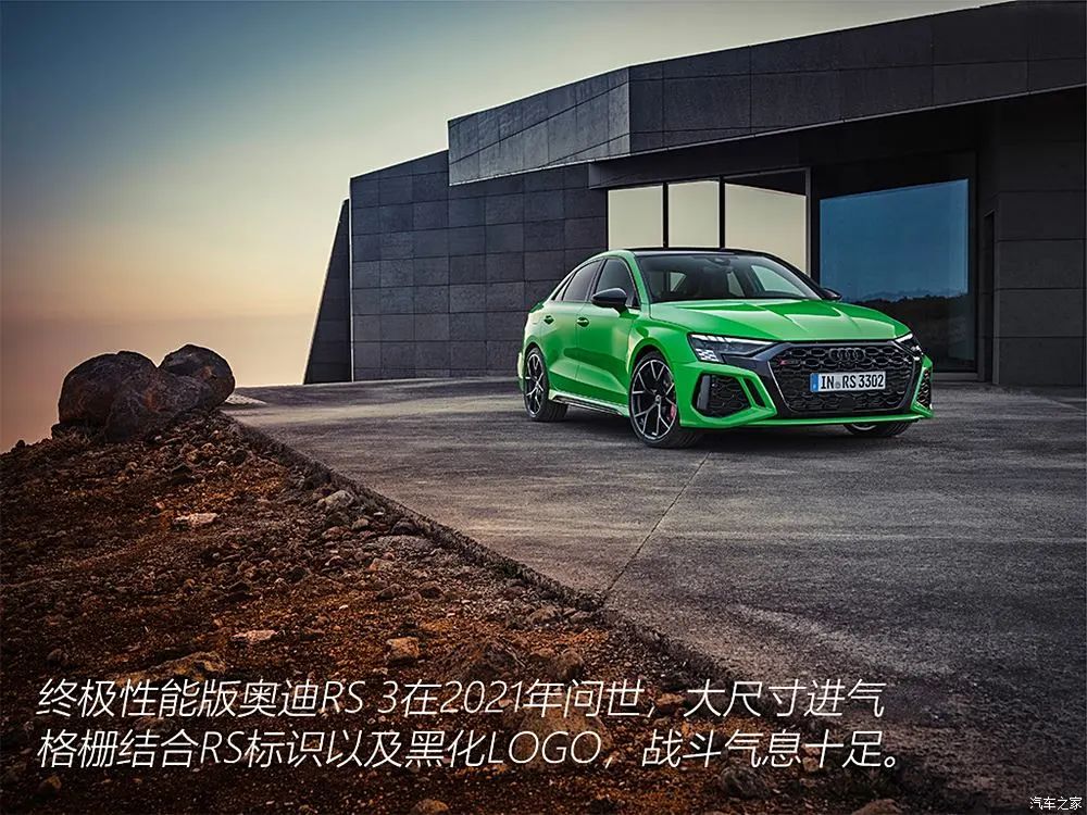 2021年7月,全新一代奥迪RS 3两厢版与三厢版车型官图发布,车头宽大的RS风格前包围,大尺寸进气格栅结合RS标识以及黑化LOGO,极具战斗气息。相比上一代,新车前轮距加宽了33mm,而Sportback车型的后轮距还增加了10mm,标配19英寸轮圈。车尾夸张的大尺寸双出椭圆排气,配合炸裂的声浪,令人血脉偾张。动力系统搭载的是2.5TFSI五缸发动机,最大功率400马力,匹配7速双离合变速器并搭配带有漂移模式的四驱系统,0-100km/h加速时间为3.8秒内。