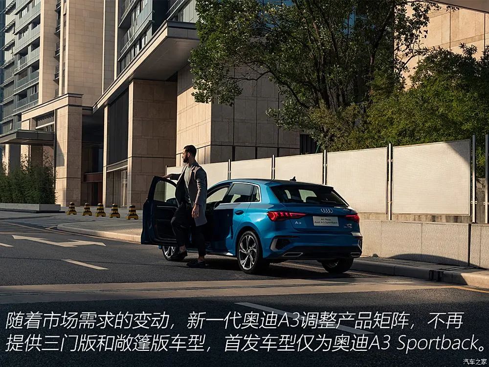 2021年1月,国产全新一代奥迪A3家族正式上市,其中A3 Sportback共推出6款配置,售价区间为20.31-24.32万元;A3L Limousine相比标准轴距版加长50mm,共推出6款配置,售价区间为20.96-24.97万元。同年7月,为庆祝一汽-大众成立30周年,奥迪A3家族推出进享人生版,均配备有30周年特别标识、18英寸轮圈,并采用天云灰专属配色,内饰辅以红色真皮座椅+黑色顶棚设计,更加凸显年轻化与运动化,售价为23.30-23.96万元。