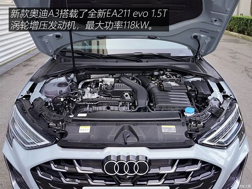 动力方面,新款奥迪A3搭载了全新EA211 evo 1.5T涡轮增压发动机,最大功率118kW,峰值扭矩250N·m。传动系统,车辆匹配S-tronic双离合变速箱,可在0.2秒内迅速完成换挡操作,0-100km/h加速用时为8.6秒。这款发动机可加注92号汽油,进一步提升了燃油经济性,WLTC工况下油耗为5.87L/100km。