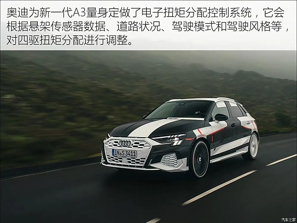 2020年8月,全新奥迪S3两厢版与三厢版车型官图发布,与标准版A3车型相比,S3的车身高度降低了15毫米,并且可选装19英寸轮圈。动力系统搭载2.0T发动机,最大功率310马力,传动系统匹配7速S-Tronic变速箱,并标配奥迪quattro全轮驱动系统,官方0-100km/h加速时间为4.8秒。底盘方面可选装S Sport悬架,具有阻尼自动控制功能,使得车辆在正常行驶时能够提供更好的舒适性,而在高速行驶或激烈驾驶时则能展现出更高的灵活性和稳定性。