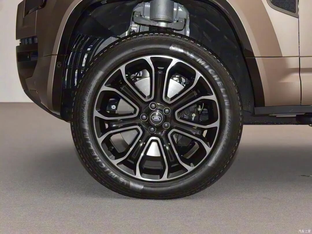 来到侧面,新车通过加宽轮拱不仅增强视觉张力,还可兼容专属20英寸及22英寸多款式合金轮圈,其中22英寸轮圈将匹配公路轮胎,而20英寸轮圈则会匹配全地形轮胎,其内部还将会配备Brembo高性能刹车卡钳。