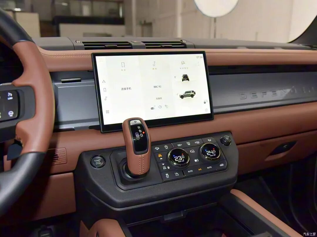 内饰部分,新车有棕色和深绿色两种配色可选,车内处处可以看到裸露的铆钉设计,充满了机械质感。在一些位置还拥有OCTA专属的外圆内方的“铜钱”LOGO设计,副驾前方拥有DEFENDER字母标志。