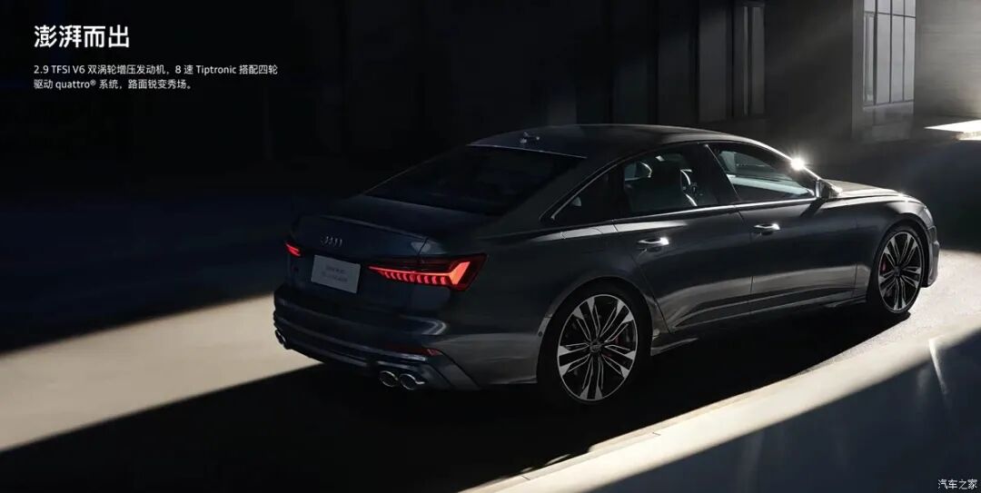动力方面,新款奥迪S6将继续搭载2.9 TFSI V6双涡轮增压发动机,最大功率331kW,最大扭矩600N·m,与之匹配的8速Tiptronic自动变速器源自奥迪RS系列车型。同时,该车将配备奥迪quattro四轮驱动。其0-100km/h加速时间为4.7秒。