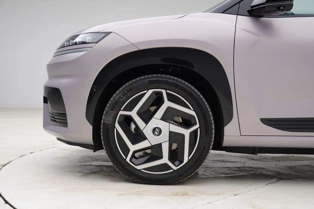 北京现代EO羿欧标配单电机前驱布局,电机最大功率160kW,最大扭矩310N·m,配备容量64.2kWh磷酸铁锂电池,CLTC续航里程540km,如果选装88.112kWh大电池版本CLTC续航能够提升到722km。此次的试驾车型采用88.112kWh电池,并搭载双电机四驱,电机总功率233kW,总扭矩480N·m,CLTC续航为590km。