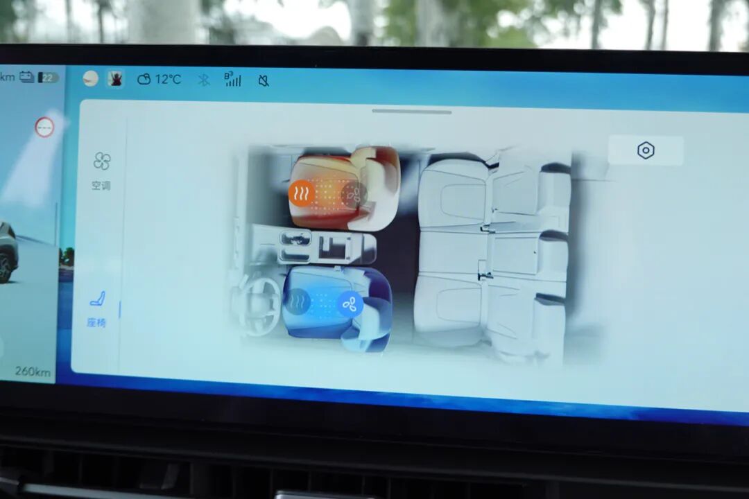 前排座椅加热和通风功能也有配备,并且座椅加热升温迅速,使用体验令人满意。高配车型方向盘支持加热。