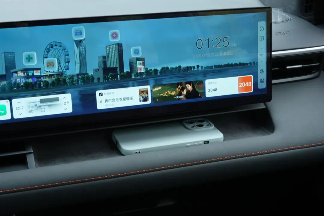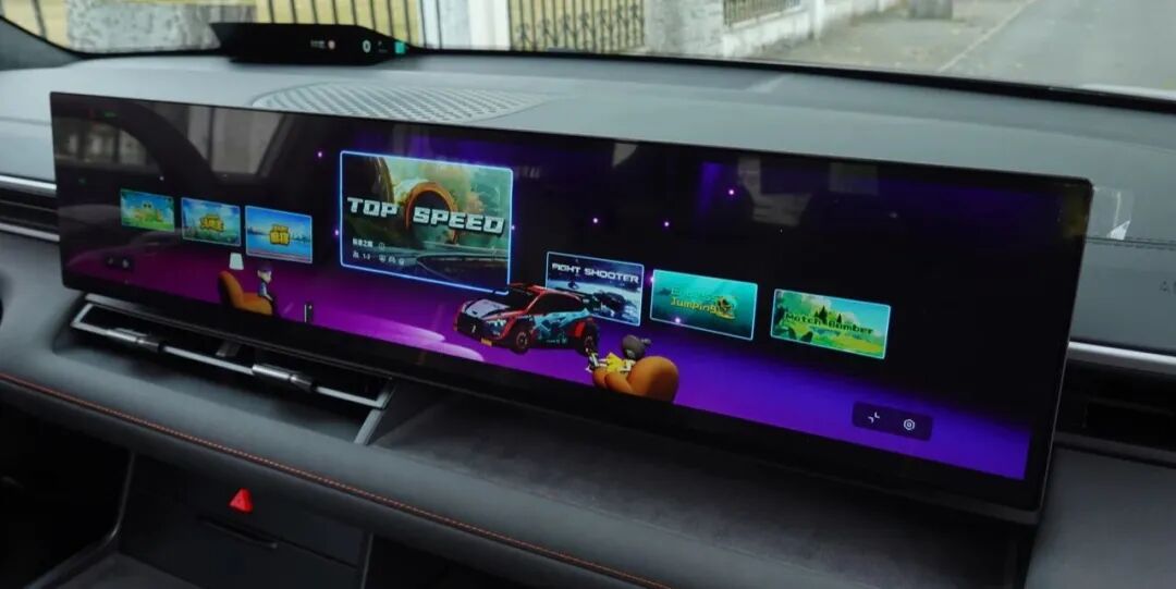 27英寸4K超薄宽幕显示屏画面效果细腻,3D城市显示屏主题带来了与众不同的体验。车机内置高通骁龙8295芯片,支持多种APP应用下载,除了常用的音视频应用外,这块大屏还可以全屏游戏。