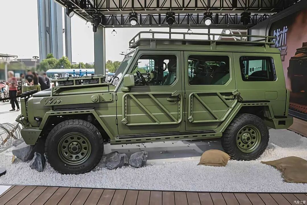 北京越野BJ81基于现款BJ80升级打造,采用BIP(Build in Public)造车理念,研发阶段即公开项目定位与用户互动收集建议。车辆外观融入硬核军事风格元素,配备金属保险杠、电动绞盘、车顶射灯及车载无人机平台,涉水深度达1.3米。