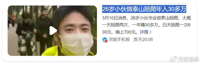 26岁小伙通过做泰山陪爬年入30多万,这一现象反映了旅游服务市场的多样化和个性化需求。以下是对这一现象的分析: