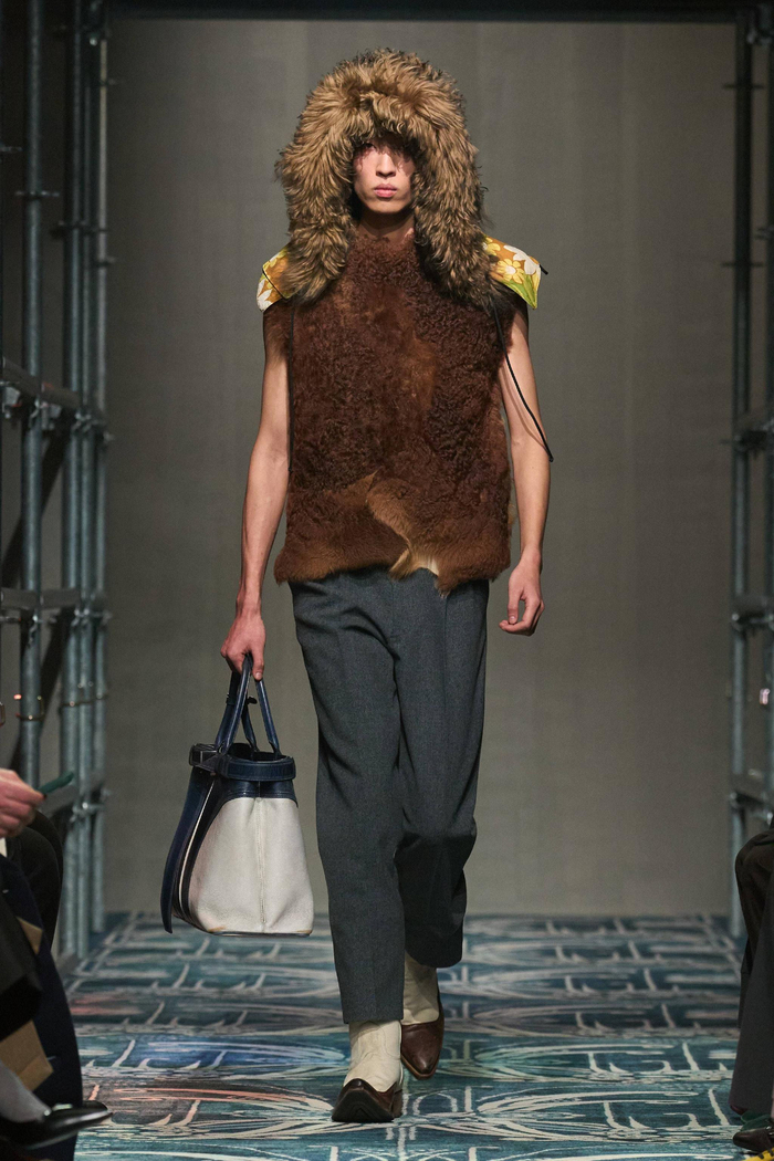 #男装周# 由Miuccia Prada和Raf Simons共同设计的Prada 2025秋冬男装系列探讨人性、基本本能,将其作为人类基本创造力的工具,审视未经学习的反应,不假思索的回应,原始的冲动。
