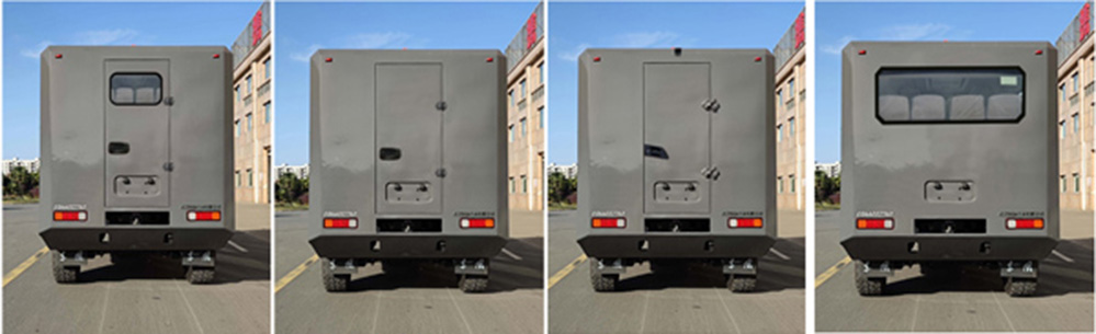尾部造型很简洁,完全就是垂直的立面设计,根据版本的不同,会有带后部侧开门和封闭式尾部的版本,另外也会有不同尾窗造型和没有尾窗的版本。