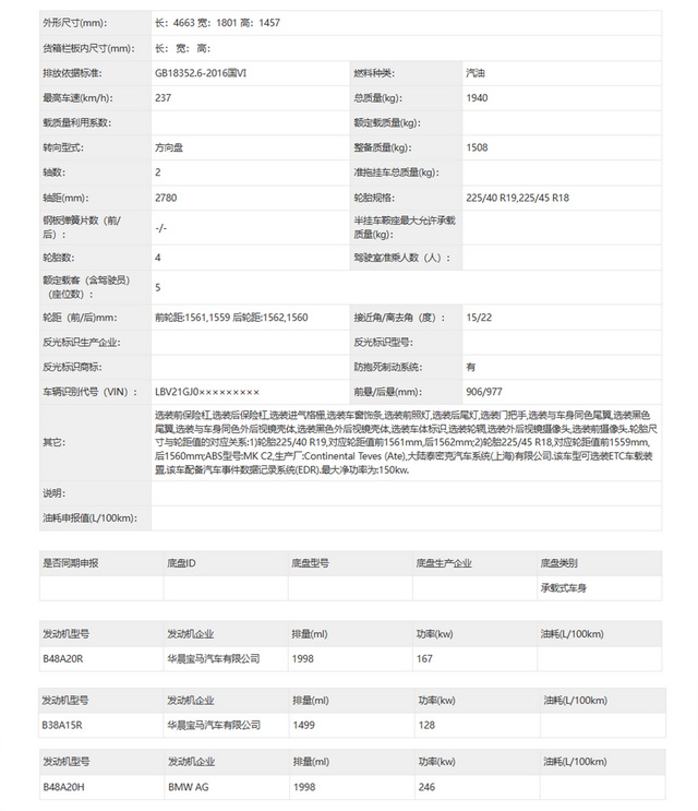 动力配置部分,国产版的全新宝马2系申报了三种动力版本,分别为最大功率128千瓦的1.5T发动机、最大功率167千瓦的2.0T低功率发动机和最大功率246千瓦的2.0T高功率发动机。