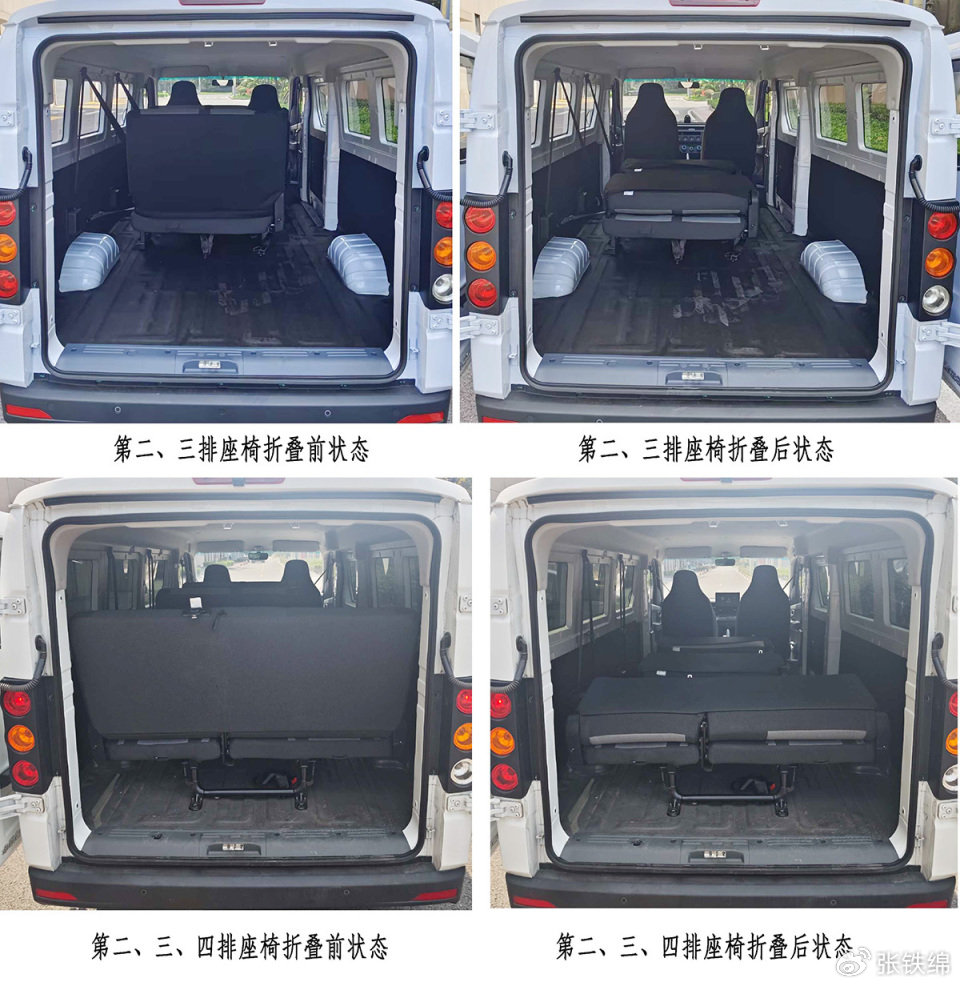 新车会有6座和9座两种座椅配置,6座车型为2+2+2布局,9座为2+2+2+3布局,后部的座椅为固定式,但是靠背能够向前折叠放平。