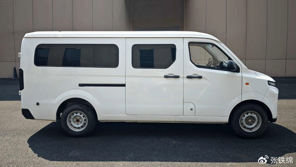 车身侧面造型简洁硬朗,车顶线条平直,使用了右侧单侧后排侧滑门设计,宽厚的车门窗框使用了与车身同色的涂装。尺寸方面,新车的长宽高分别为4845/1730/1985mm,轴距为 3100mm。