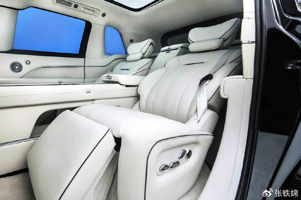 新车使用了2+2座椅布局,后排是两个沙发式的座椅,带有电动推托以及多向电动调节,两侧座椅之间是和前排中央扶手箱一体式的多功能中央地台。