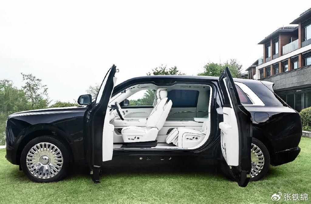 新车的外观设计风格和劳斯莱斯库里南(配置|询价)基本一致,而且是包括很多细节造型上。前脸造型很宽厚,造型轮廓方正垂直,中网上部和下部是宽厚的镀铬装饰,内部使用了大面积的直瀑式镀铬格栅,视觉效果很霸气。大灯使用了长方形轮廓,前杠两侧带有进气风道,下部还带有黑色的横向格栅。