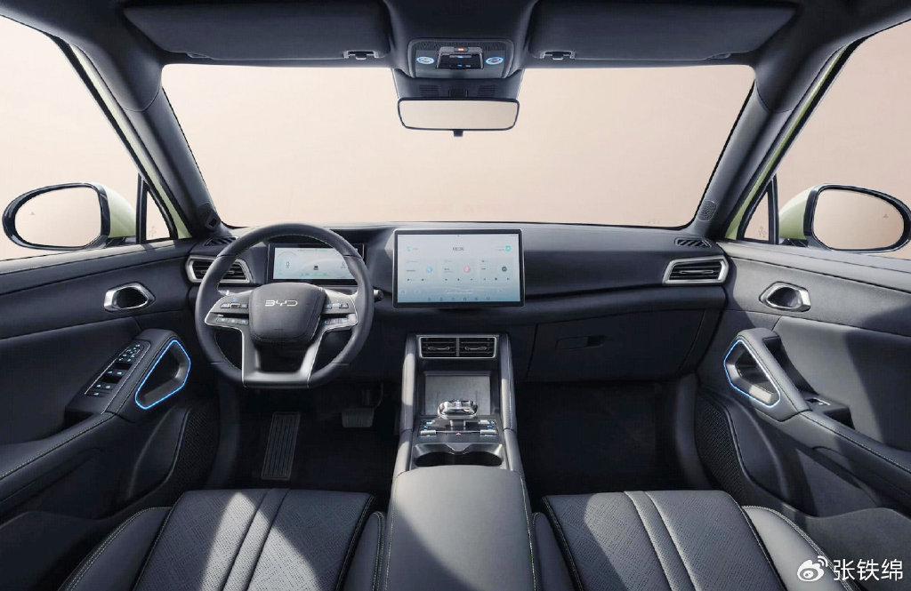 从新车官图来看,混动版ATTO 2 DM-i的外观整体造型和电动版基本一致,前脸造型很简约俊朗,上部带有封闭式的中网饰板,使用的是BYD字母车标,前杠下部带有进气格栅,使用了突出的下包围设计。