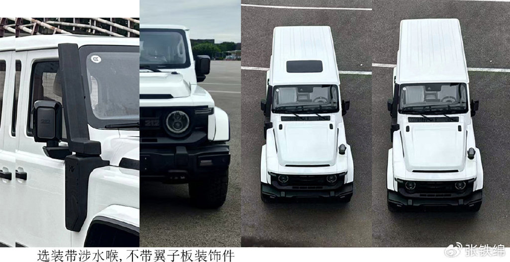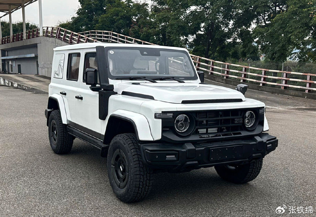 从申报图来看,新车型的前脸除了大灯之外,其余部分造型都经过了重新设计,取消了普通版车身同色涂装的中网边框和中网,使用了新的方正的黑色中网,内部是黑色的格栅,其中212车标位于中网格栅一侧。前杠也使用了全新的造型,视觉效果很粗犷硬朗。