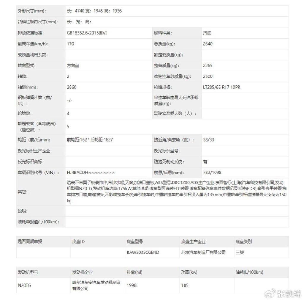 动力配置方面,此次申报的新车型搭载的是来自东安的2.0T汽油发动机,最大功率为185千瓦。