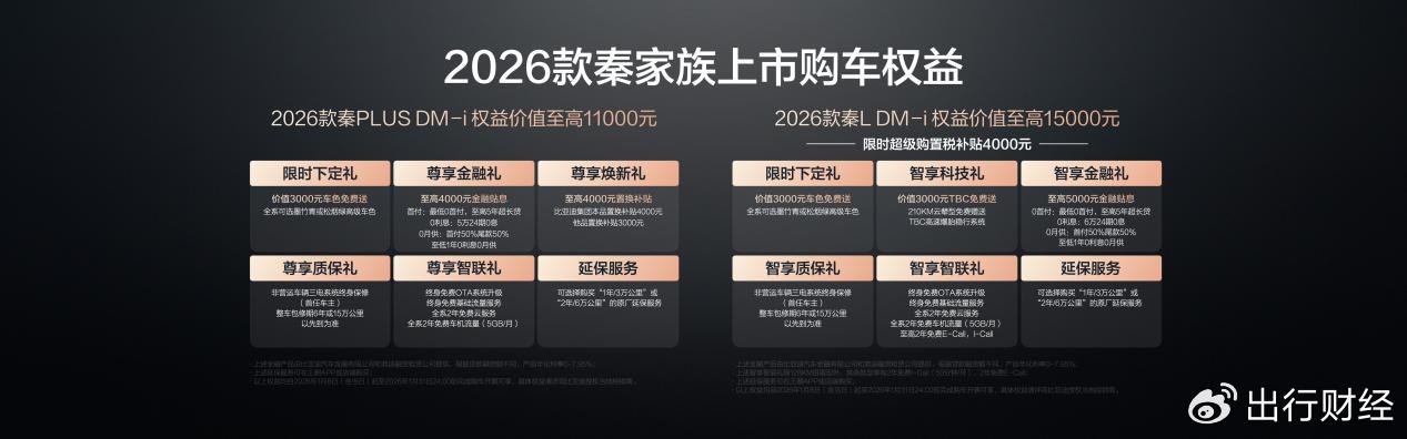 11月8日,2026款秦L DM-i(配置|询价) /2026款秦PLUS DM-i(配置|询价) 210KM长续航版双车同步上市,售价8.98-12.28万元。两款混动新车的具体续航表现为,纯电续航210公里,满油满电综合续航达2110km。