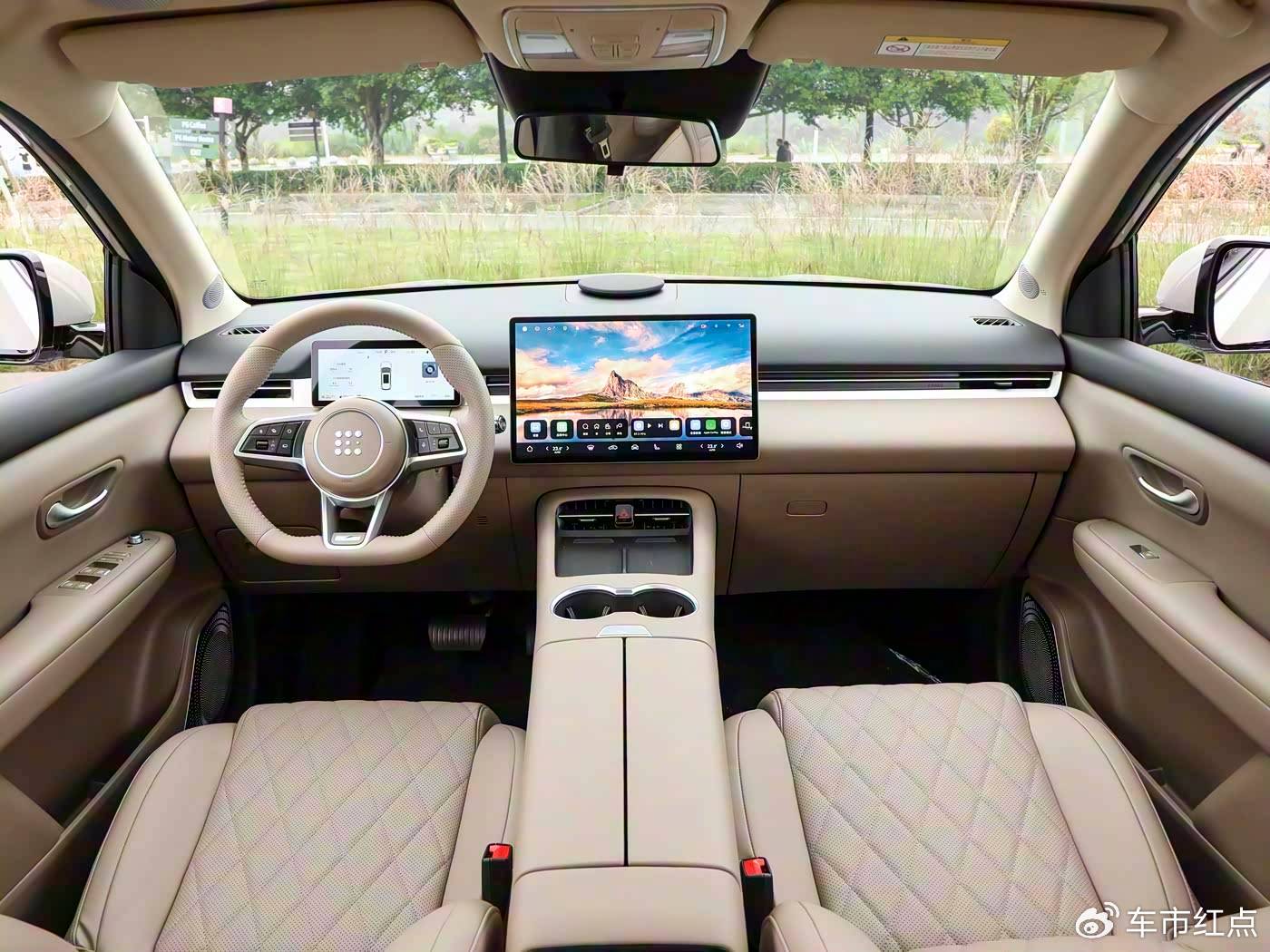 更符合中国家庭生活习惯的是“四季茶室”和“山野厨房”功能。中控台隐藏的一体式即热饮水机支持5档水温调节和3秒速热。全景旗舰露营包则包含双嵌入式电磁炉和集成式餐厨桌,可直接在户外进行烹饪。