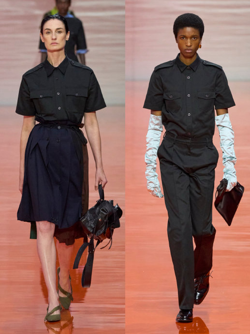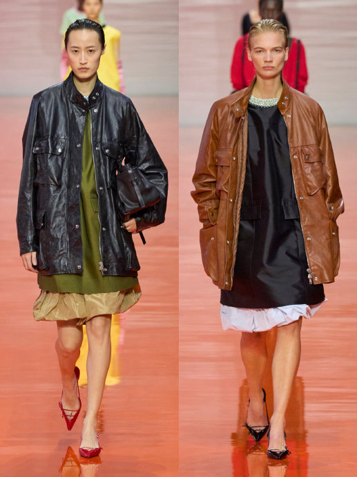 Prada 2026春夏系列发布秀——-创意总监 Miuccia Prada 与 Raf Simons 共同呈献,以「BODY OF COMPOSITION」(身体的构成)为主题,回应文化过载,将服装化为过滤与提炼的语言,将看似分散的元素重新呈现在身体之上。🍃🌸学院风的POLO衫被放大夸张、加以硬挺质感,转化为极具气场的外套,或线条张扬的开衫。带有宝石领口的宽松鸡尾酒裙,则被随意叠穿在粗犷皮衣下,流露出如卫衣般的漫不经心。🍃🌸而裙装——Prada最具代表性的符号之一——则展现了多重变奏:泡泡裙、百褶裙、铅笔裙层出不穷,甚至将苏格兰格纹、巴伐利亚传统Dirndl裙以及晚装蕾丝元素拼接在一起,再以罗缎丝带整齐收束,形成一种别具秩序感的解构拼合。🍃🌸当不协调的元素在身体上重新组合后,冲突反而成为创造。设计以非传统方式环绕身形,结构极度简化,线条轻盈流动;裙装从肩膀悬挂形成背带裙,胸衣自成形体却无需支撑,伞裙以立体弧度延伸空间感,手套成为精致点缀。工装制服与晚装交织呈现典型女性元素和全新优雅美学。🍃🌸整场秀大胆而自由的用色张力十足——从秀场内铺陈的大片亮泽橘色地板,到用于衬衫、连衣裙和外套上的鲜明色彩。🍃🌸这场秀是一场对服装本质的彻底重思,也是属于当下的无限创作,整个系列以“高智感”的设计表达,体现了 Prada 对未来时尚的前瞻性思考,也展现了品牌在传承与创新之间的平衡。通过对传统元素的解构与重组,Prada 为现代女性提供了一个既具力量感又不失柔美的衣橱,展现出品牌对女性独立与多样性的尊重与支持。#Prada大秀高智感##春夏时装周#