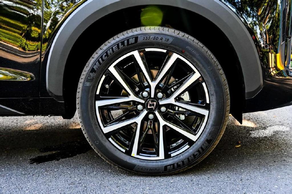 侧面造型上就显得比较传统,腰线向上提拉,略有俯冲的感觉车顶的弧线在C柱后方和尾窗的线条形成了交叉,算是在比较传统的侧面增加了些许亮点。而侧面最大的亮点是轮胎,作为一个定位于10-15万左右的自主SUV,搭载了19寸的轮圈并且使用了米其林的SUV专用胎,“良心”二字写在了脸上。