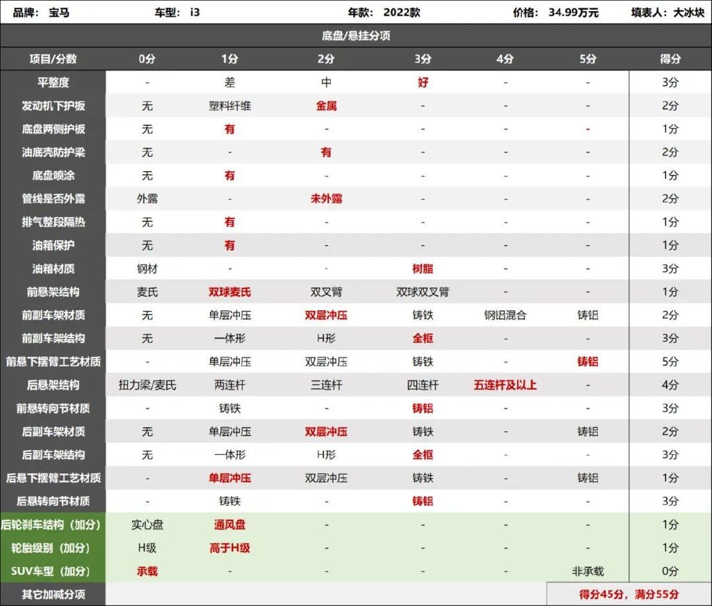2022款宝马i3底盘评分