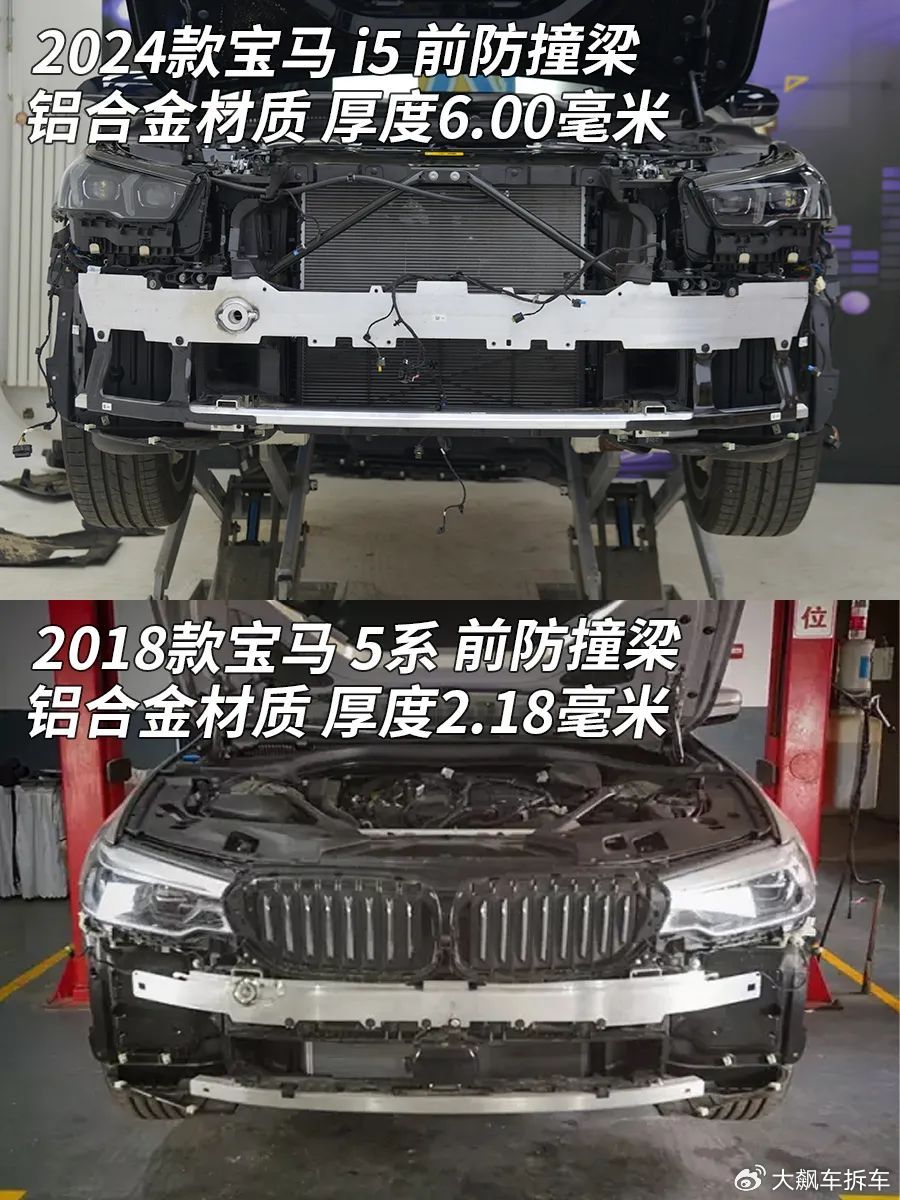 这辆宝马i5(配置|询价)起初的定位就是“油改电”,官方也从不避讳。为什么宝马能有这样的底气呢?今天我们就把这辆车拆开,从前后防撞梁开始,一起来看看!