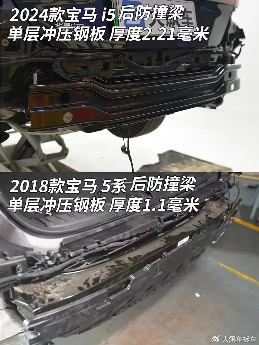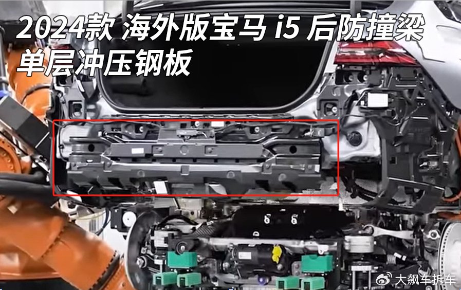 不过,有意思的是2018款海外版宝马5系后防撞梁是铝合金材质,而最新的海外版宝马i5的后防撞梁也变成了单层冲压钢板。这次宝马终于做到了海内外一视同仁。