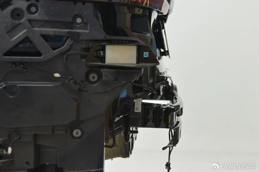 前杠皮装有3个毫米波雷达,用于L2级别的辅助驾驶,两侧配有UWB超宽带模块。