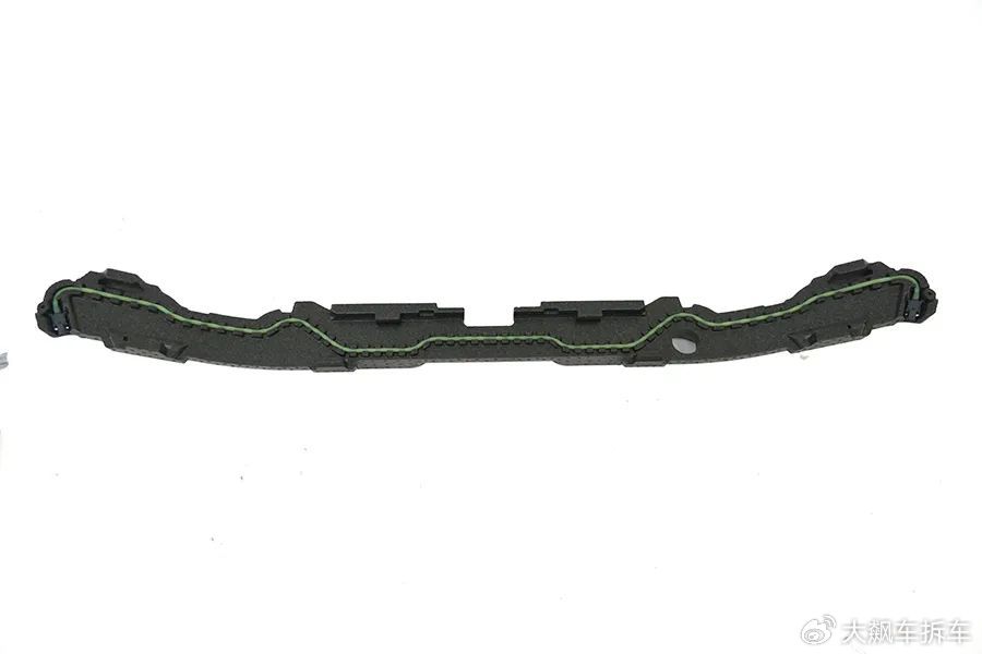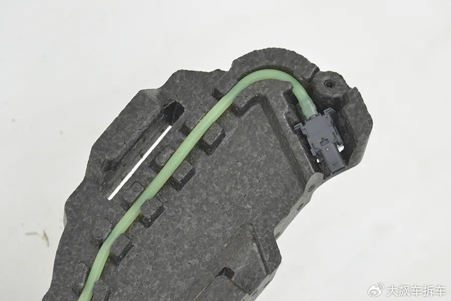 保护泡沫内侧镶嵌有一根橡胶材质的气压管,两端配有气压传感器。也就是说,这辆车配有主动式引擎盖弹起功能,在低速碰撞中,可以更好地保护行人。
