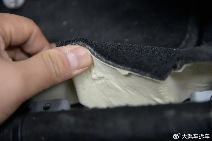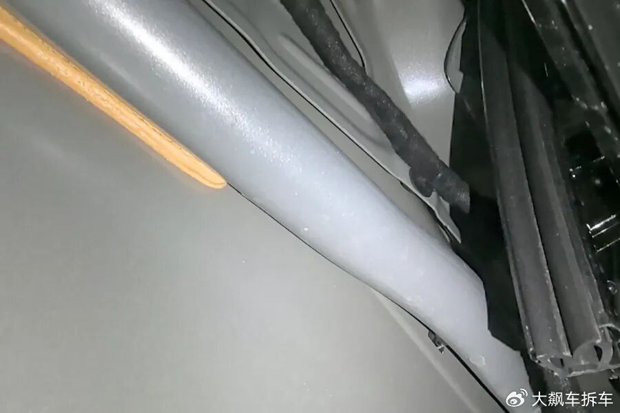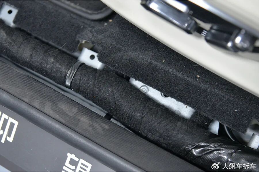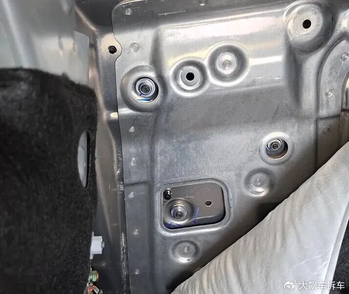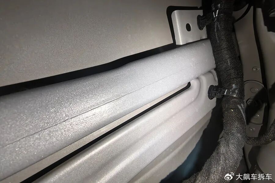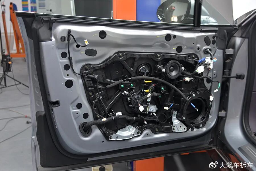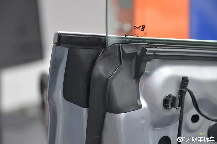 拆开车门内饰板,能看到车门采用高端车常用的硬塑料板密封。