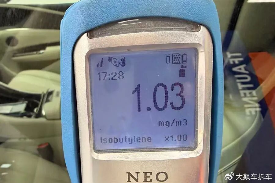 经过在23±1℃恒温环境中16小时的封闭,这辆车的车内空气TVOC释放量测量数值为1.03毫克每立方米。