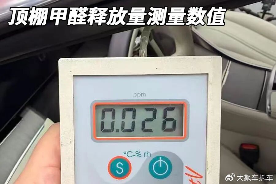 座椅的甲醛释放量测量数值为0.018毫克每立方米,顶棚中的甲醛释放量测量数值为0.026毫克每立方米。