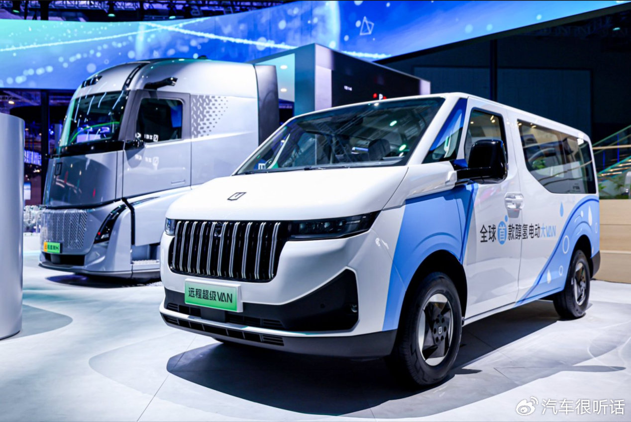 如果说甲醇是绿色能源的基石,那么吉利醇氢科技的创新则为其注入了无限可能。展台上,全球首款醇氢电动超级VAN(配置|询价)和远程星瀚H醇氢电动重卡成为焦点。前者基于线控智能架构开发,搭载高效醇氢动力链,全生命周期实现零碳排放;后者则以单次补能5分钟、续航超1500公里的性能,刷新了新能源重卡的行业标准。