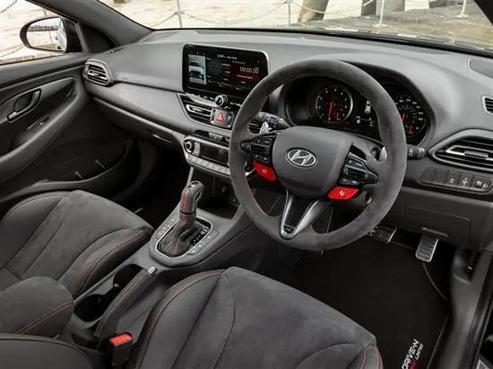 内饰方面,新车采用了大量Alcantara材质,档次感有所提升,同时新车在方向盘、换挡杆以及座椅等位置采用红色缝线,方向盘下方还设计了红色的拨片,再配合一体式桶形运动座椅,为驾驶者带来更强的性能感。