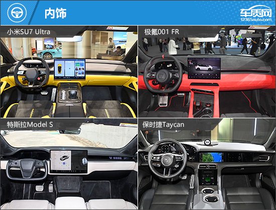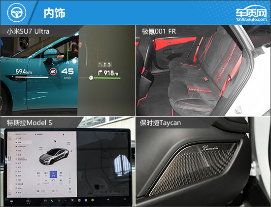 内饰方面,小米SU7 Ultra和极氪001 FR均采用了鲜艳的内饰配色,有效提升了时尚感,贴合年轻消费者的审美。同时,两款车均配备了大尺寸悬浮式中控屏,科技感十足;特斯拉Model S则采用了半悬浮式中控屏设计,同样彰显科技氛围。相比之下,保时捷Taycan的内饰设计更偏向传统燃油车风格,但在保留经典元素的同时,通过多块屏幕的加入,巧妙融入了新能源时代的科技感。