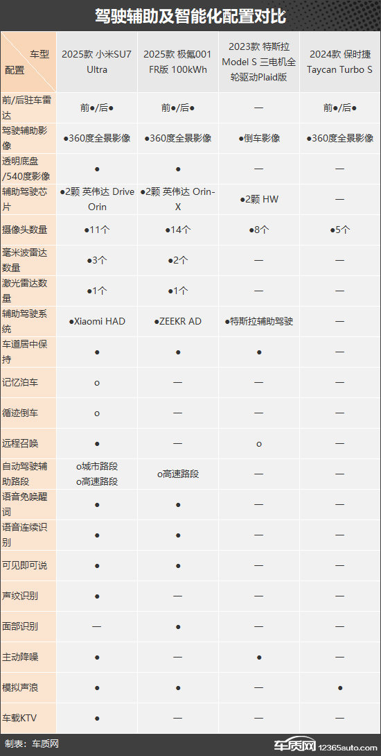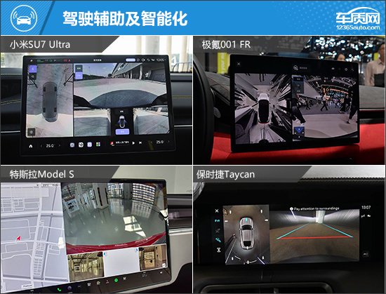智能化配置方面,同样是两款自主品牌车型表现相对出众。小米SU7 Ultra和极氪001 FR均支持语音免唤醒词、语音连续识别、可见即可说功能。此外,两款车型分别拥有声纹识别和面部识别功能,使用体验更有科技感。
